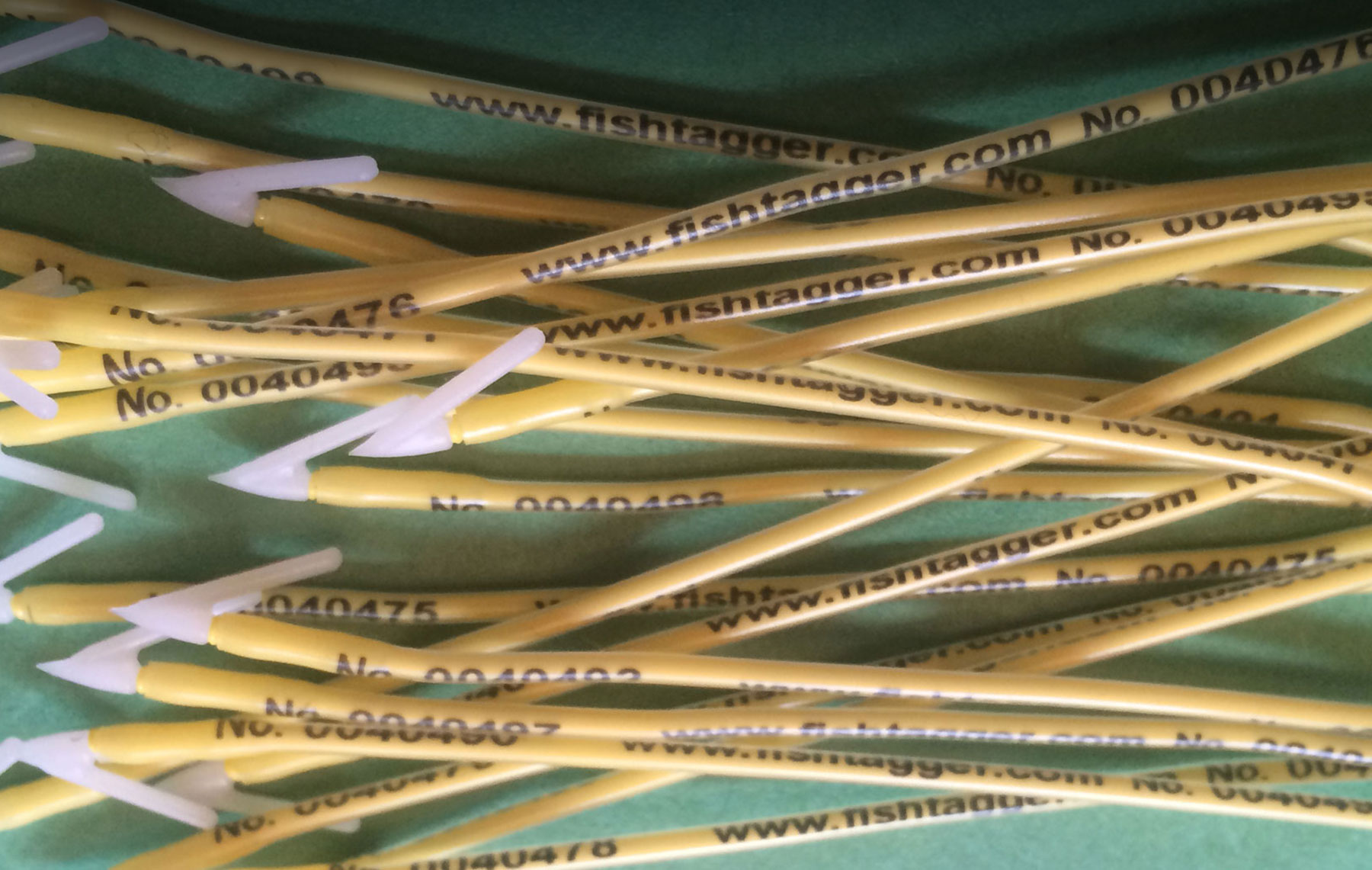 Tags have a UNIQUE ID and our web site imprinted in the tag. You tag and release a fish and enter information about the fish for this Tag ID on our web site or mobile app. You or other anglers add history to this Tag ID each time the fish is caught.